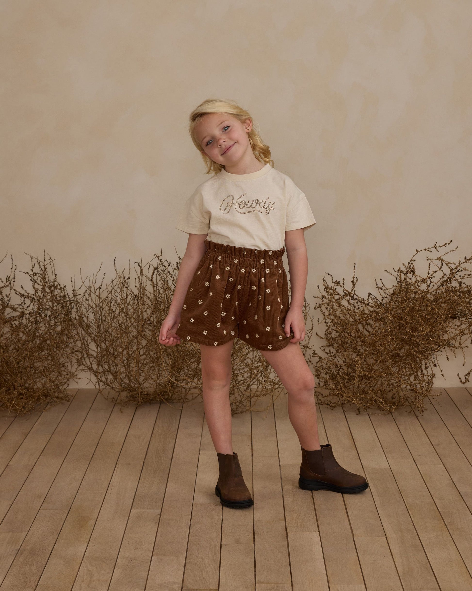 Super soft boxy fit tee with a round neckline and dropped sleeves.