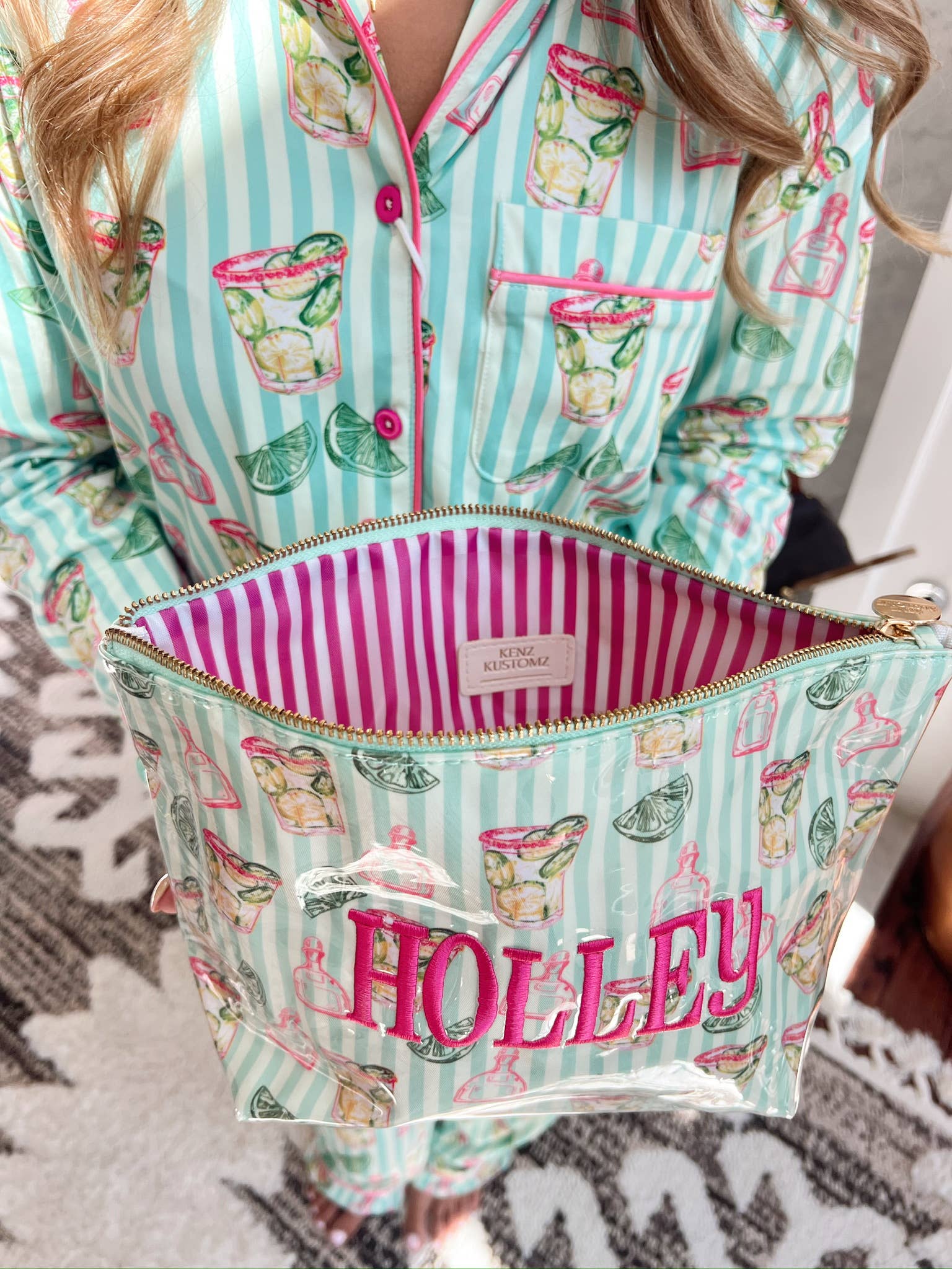 Perfect gift at holiday, this embroidered bag + matching PJS!
