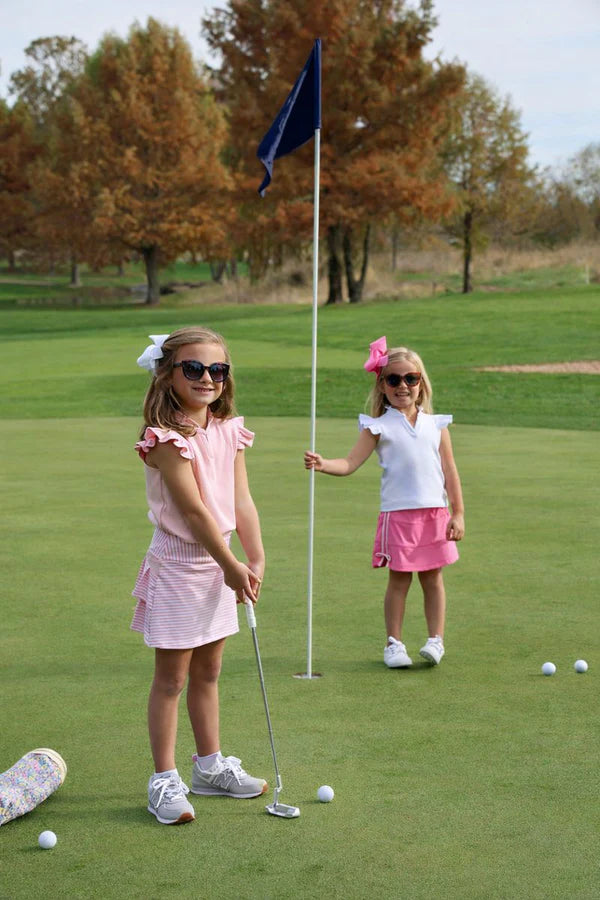 Our Prepletic™ Cindy Skort in Sandpearl Pink Stripe is a versatile skort that combines athletic functionality and Southern charm for active days that demand both style and movement. The built-in shorts provide confident coverage while the flattering silhouette transitions effortlessly from tennis courts to lunch dates to playground adventures. An essential for your active little one!